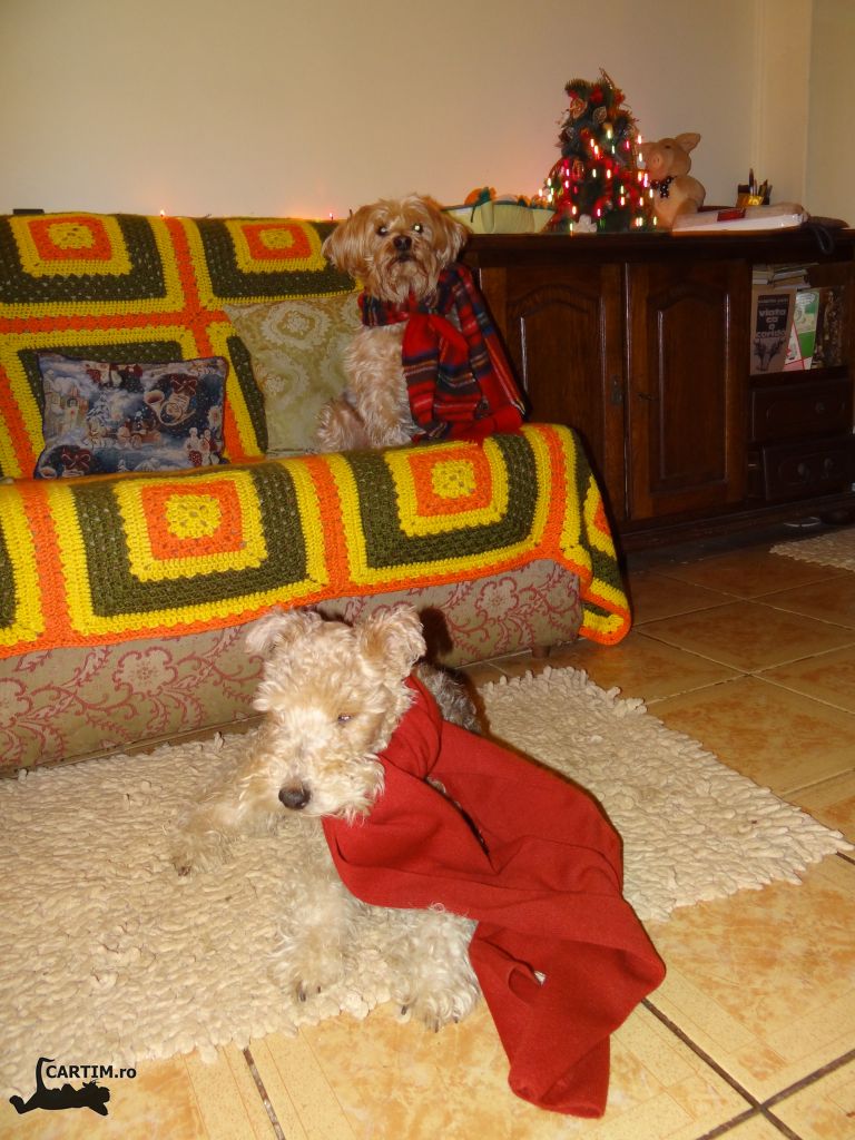 – Bipedul nostru ne-a chemat sa facem cateva poze “oficiale” de Craciun.Noi, latratorii, ne-am supus, chiar ne-a placut ca suntem bagati in seama si ii putem face o bucurie.
