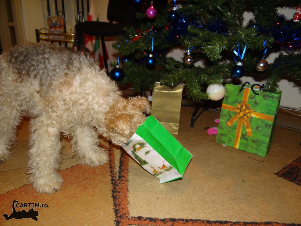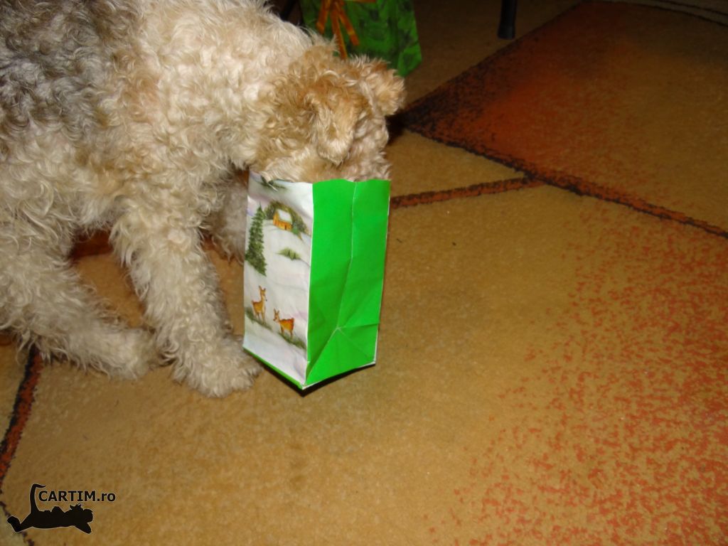 – Cadou, cadou!!! Wooff, wooof, Yorky, uite Denta Sticks, yami, yami…am primit cadou!!!