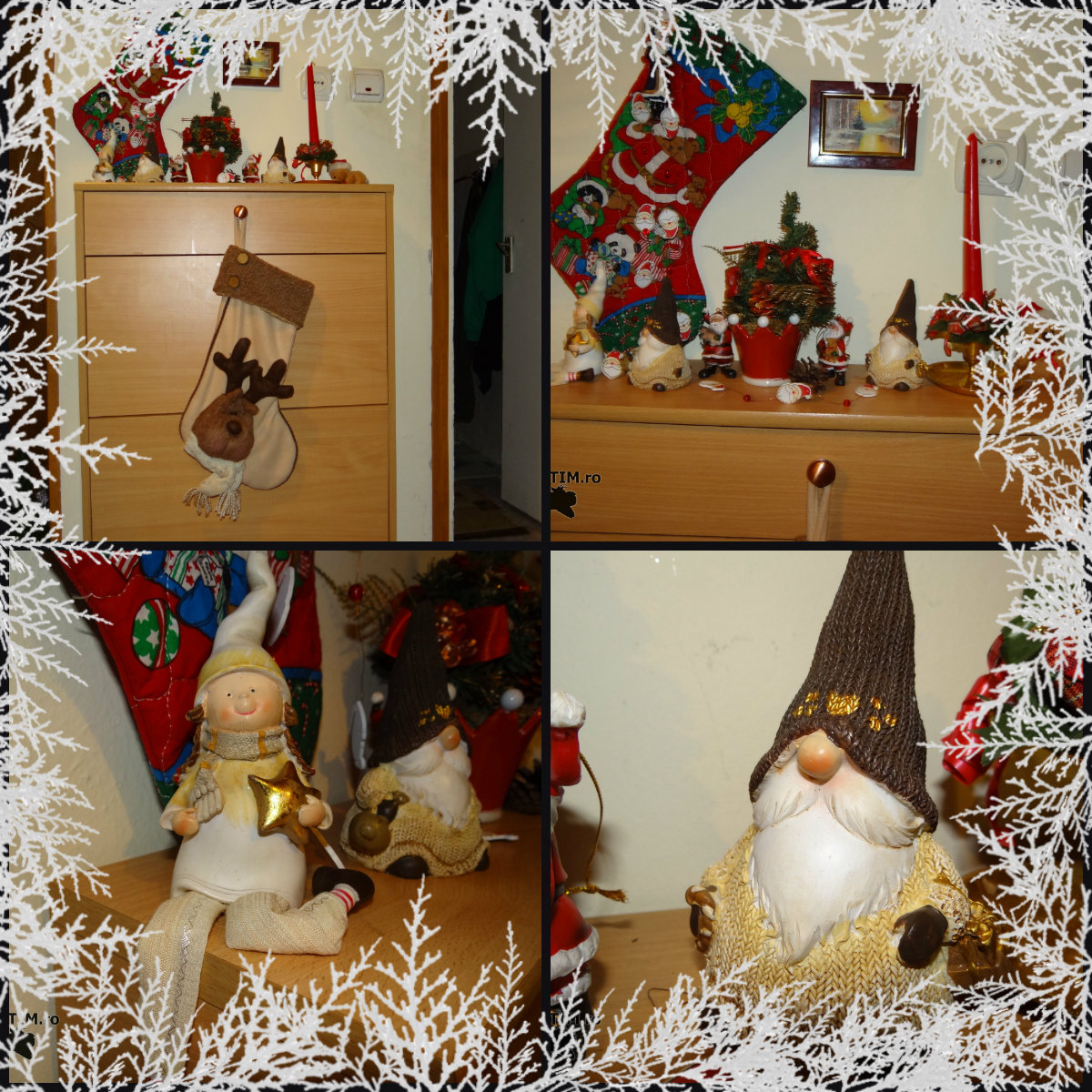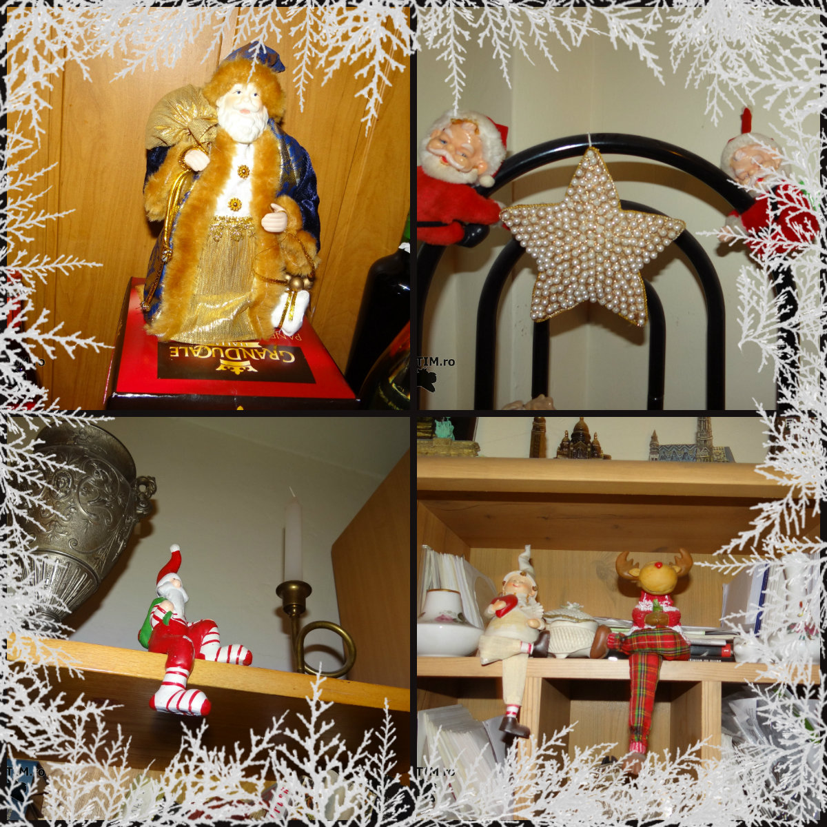 Primind un asemea “ordin”de la cele doua urmase ale lui Grinch in ceea ce priveste decorarea casei si a bradului m-am dus si am inceput sa scot cutiile ce adaposteau ornamentele de Craciun.Incet-incet am decorat casa si am adus in ea spiritul acestei perioade.Elfi, Mosi de toate tipurile,coronite, toate au inveselit casuta de la intrare si pana in balcon .