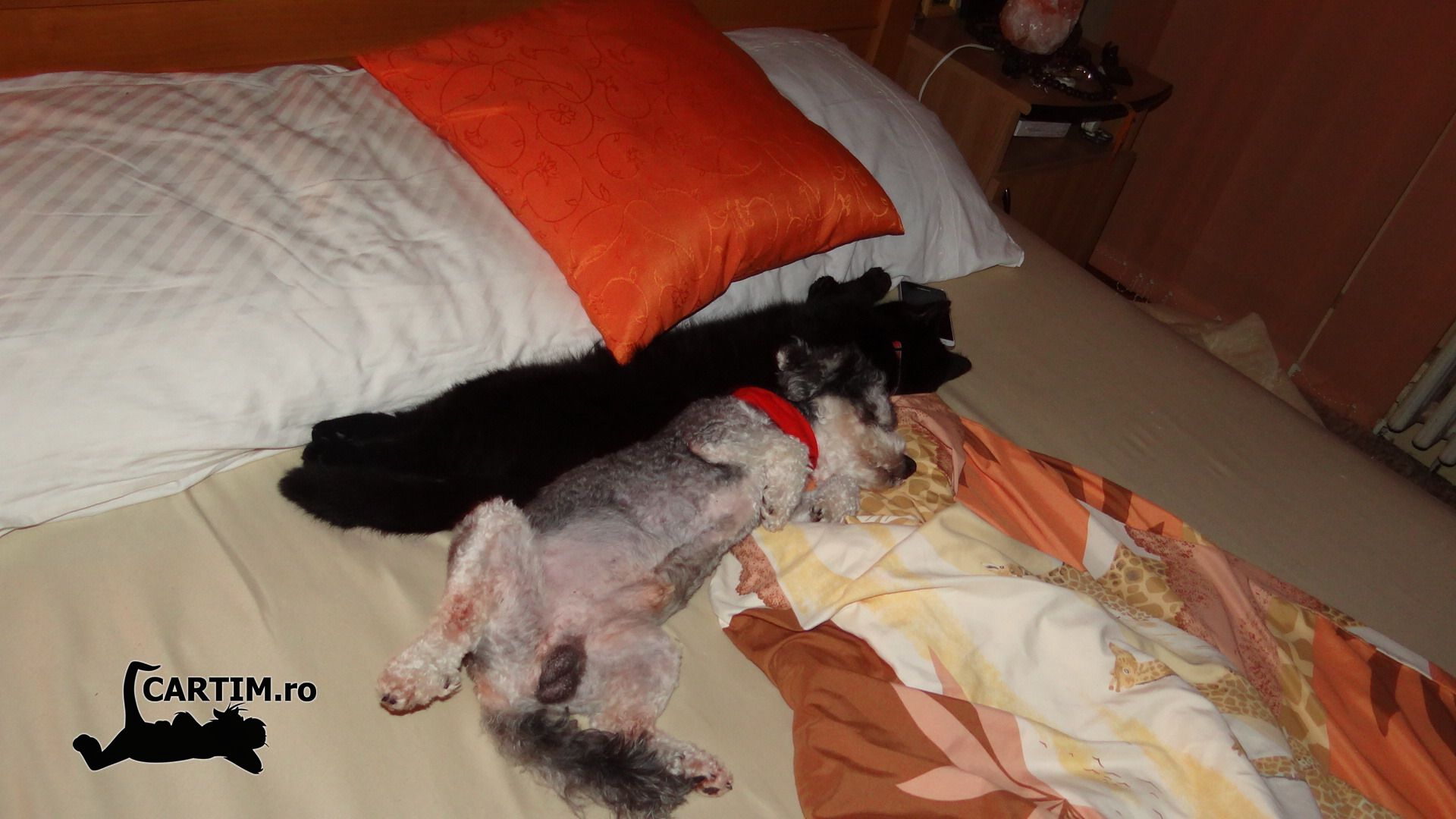 hahaha, asta da lafaiala! ☺ Pe canapea în sufragerie nu ai loc, in dormitor in pat nu ai loc ☺☺☺ Cunoasc faza – si noi avem un foxterrier rasfatat. Exact asa dorme si el, cu burta-n sus ☺☺☺ Grozav cat de bine se simt si stiu ca sunt iubiti si ca le este permis <3