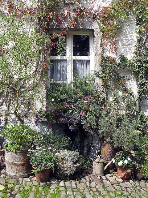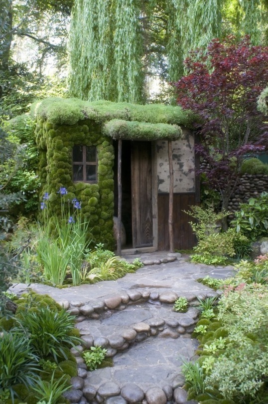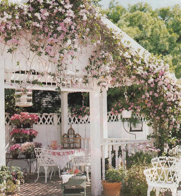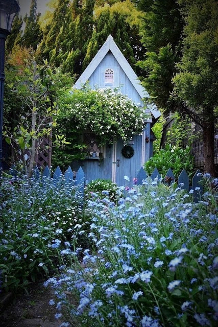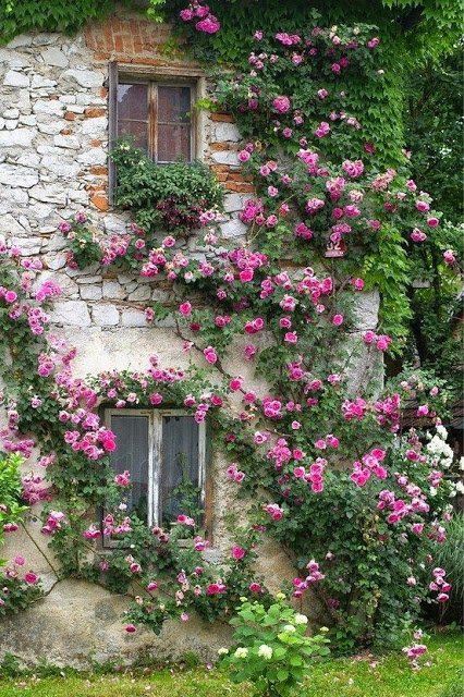 Casute ca din povesti, cu ciorchini de flori si muuuulta verdeata.
