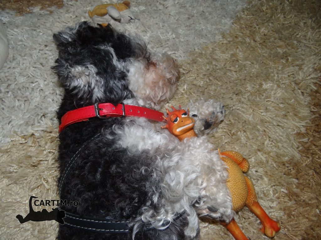 Sa ma bata cucul dar cred ca Denis ma saboteaza 😛 cred ca a recunoscut curierul si era atat de nerabdator sa deschid pachetul: zgaraia cu labuta cutia,scotea sunete vesele, in timp ce coada ii falfaia ca pe pilot automat 😛