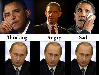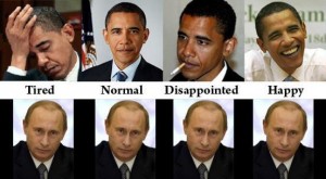 Desi amnadoi au terminat Dreptul, Obama ramane “uman” in toate situatiile, fata de Putin care este unul din politicienii a carei mimica, ramane identica in aproape orice situatie.