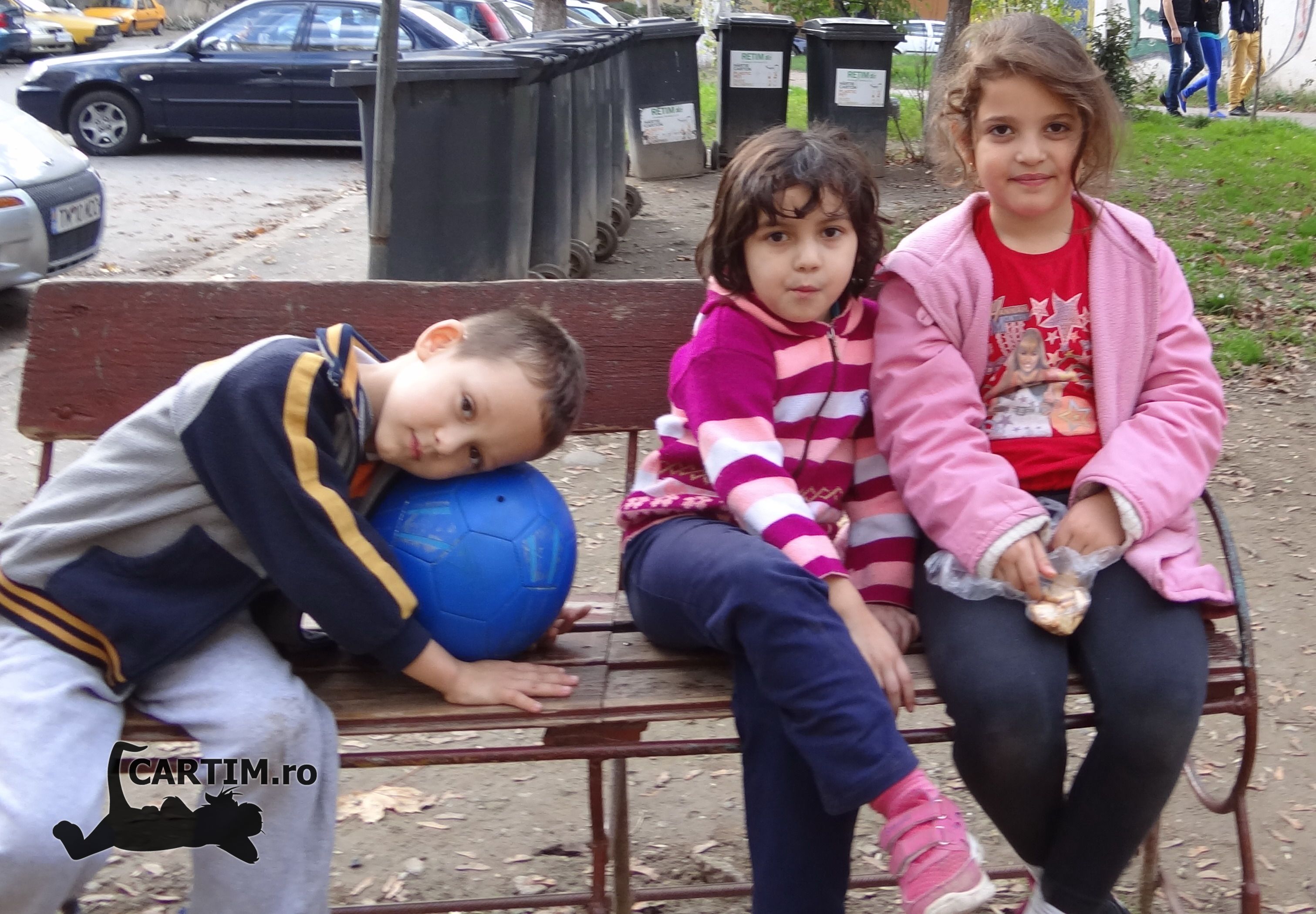 Desi a fost mai racoare azi in Timisoara, i-am gasit pe toti afara si am decis sa le fac o surpriza.Am intrat mai intai in Carrefour si am cumparat doua cutii cu bomboane de ciocolata “Milka” pe care le-am oferit celor trei pitici.