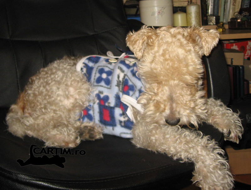 Hainuta in poza este luata de la copii, pentru ca la Pet Shop sunt foarte scume asa ca am adapatat o haoina de kinder la nevoile unui catel, cu mici tranformari, dar o poarta si chiar mi-o aduce sa il imbrac cu ea 😛